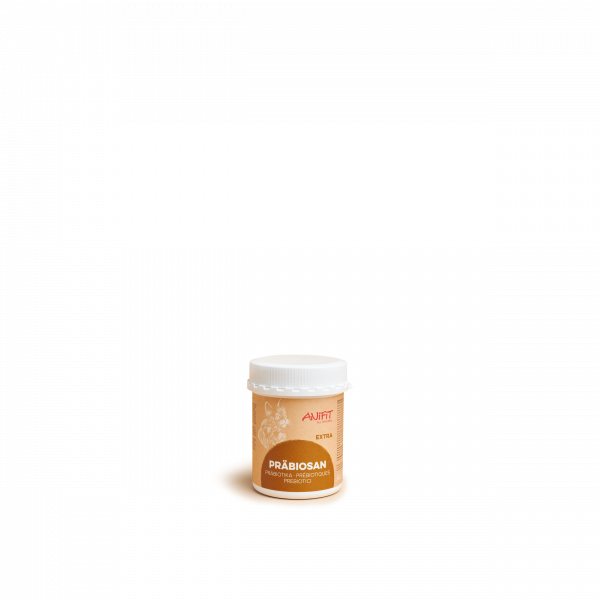 ANiFiT Präbiosan est un complément alimentaire de haute qualité pour le traitement des troubles intestinaux chez le chien et le chatqui s’occupe de régénérer et rééquilibrer la flore intestinale grâce à des agents prébiotiques actifs et à des éléments nutritifs qui soutiennent sélectivement la flore saprophyte (cellules vivantes).